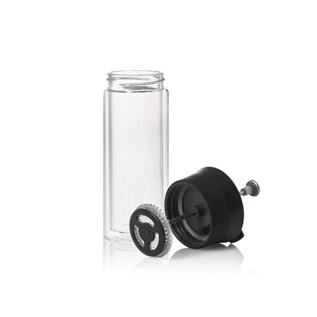 Begin je de dag graag met verse koffie of neem je de koffie graag mee naar het werk? Met de Thermo-Glass cafetière koffiebeker van AdHoc heb je het beste van beide werelden! Via het French Press mechanisme zet je eenvoudig verse koffie waarna het deksel met clipsluiting ervoor zorgt dat je de koffie direct kan drinken zonder het in een kopje te hoeven schenken. De werkwijze is eenvoudig: Vul de beker met 20 gram gemalen koffie gevolgd door 300 ml heet water. Doe het deksel op de beker met de pers naar boven en laat de koffie 4 minuten trekken. Druk hierna de pers naar beneden en je koffie is klaar. Door de clipsluiting in het deksel te openen, kun je nu direct van je koffie genieten! Dankzij het dubbelwandige borosilicaatglas blijft de koffie langer warm en kun je de koffiebeker veilig vastpakken zonder je vingers te verbranden. Na gebruik kunnen de onderdelen eenvoudig in de vaatwasser worden schoongemaakt.