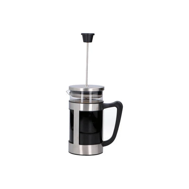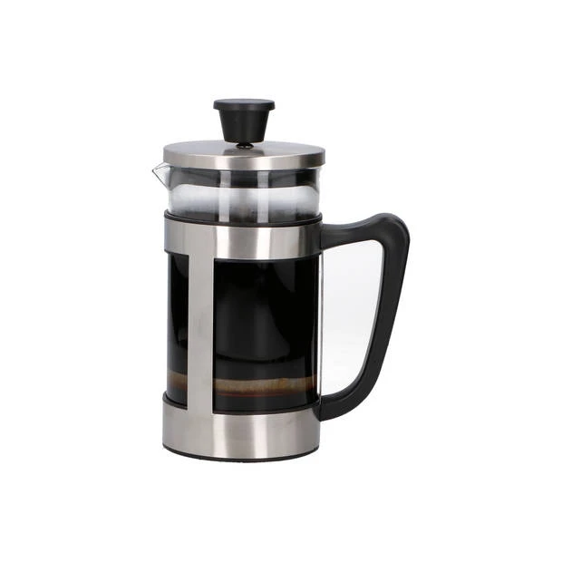 Zet snel en gemakkelijk heerlijk verse koffie met deze stijlvolle Alpina cafetière. Deze manier van koffie zetten heet ook wel ‘French press’ en heeft als voordeel dat je alle koffiesmaak behoudt. Deze cafetière bestaat uit een glazen kan met schenktuit, zodat je je koffie gemakkelijk in een kopje giet. De houder, zeef en deksel zijn gemaakt van RVS, dus hygiënisch en duurzaam. Het handvat en de drukknop zijn van zwart kunststof.