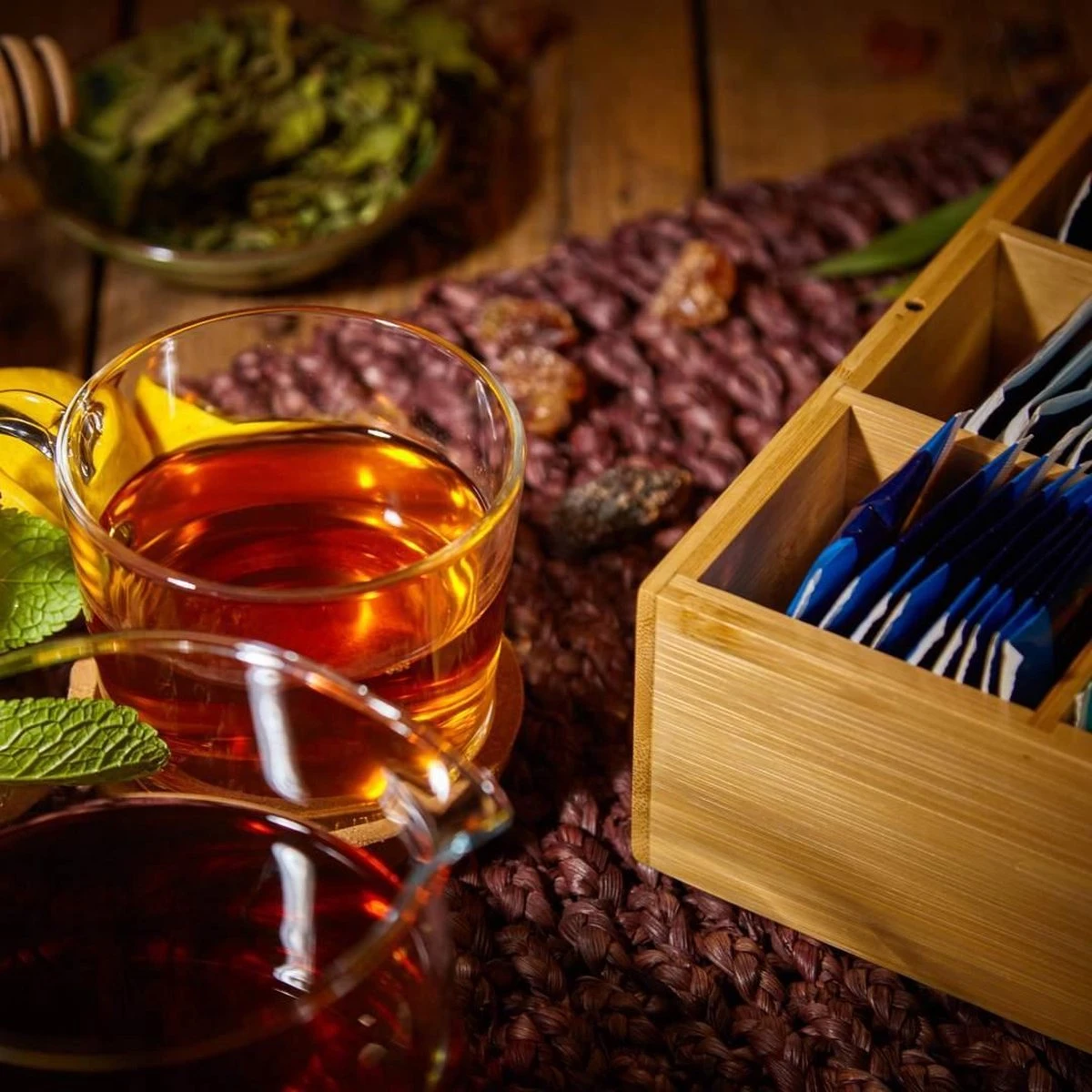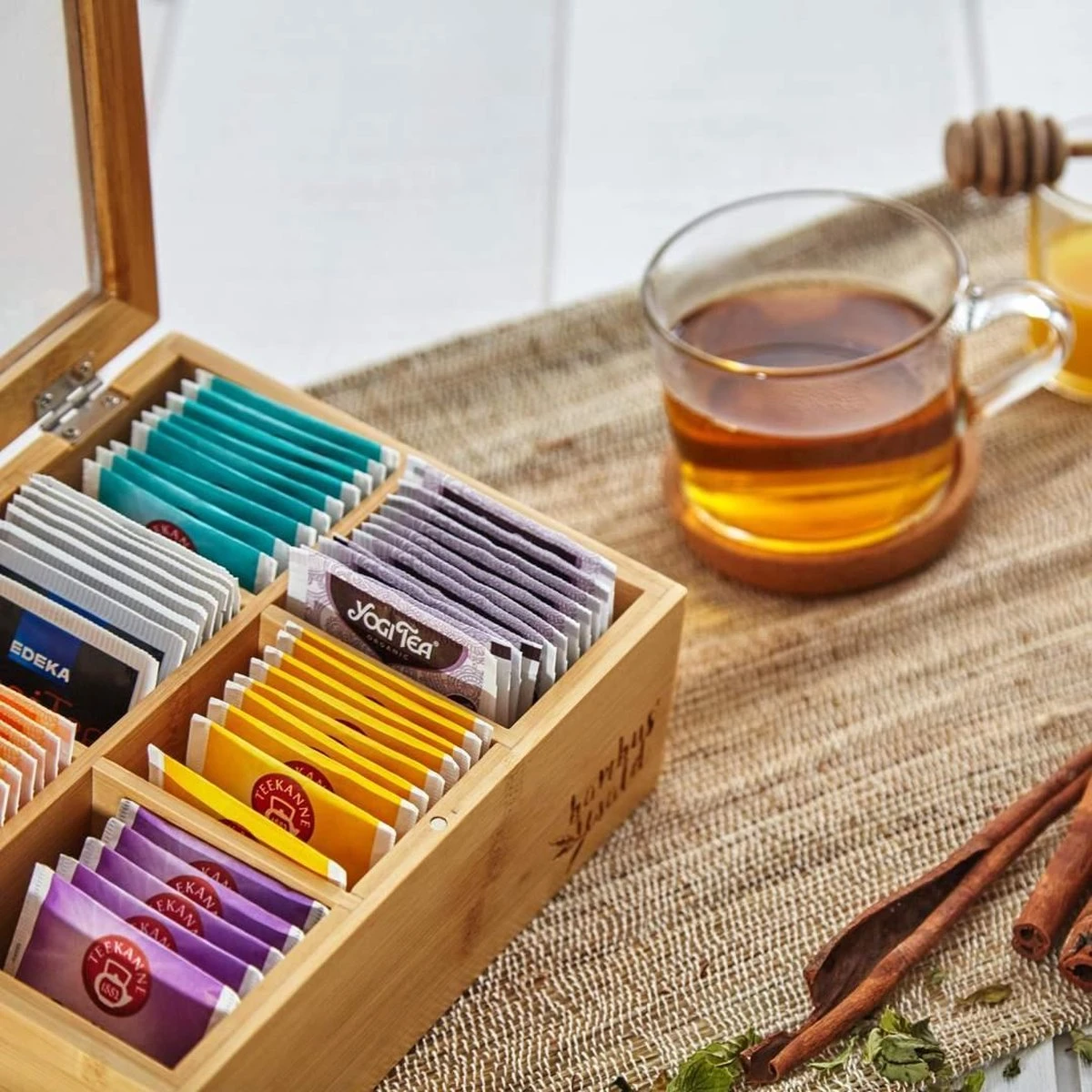 Elk compartiment heeft een afmeting van 6,5 x 6,5 x 8,5 cm voor 10 tot 15 theezakjes. U kunt de thee box op het werk, op het ontbijtbuffet of dressoir in het restaurant of thuis gebruiken. De doos is ideaal voor High Tea en afternoon tea in het weekend. Dankzij de strak zittende deksel heeft u geen verlies van aroma. Met het venster deksel heb je altijd een overzicht van de huidige voorraad.