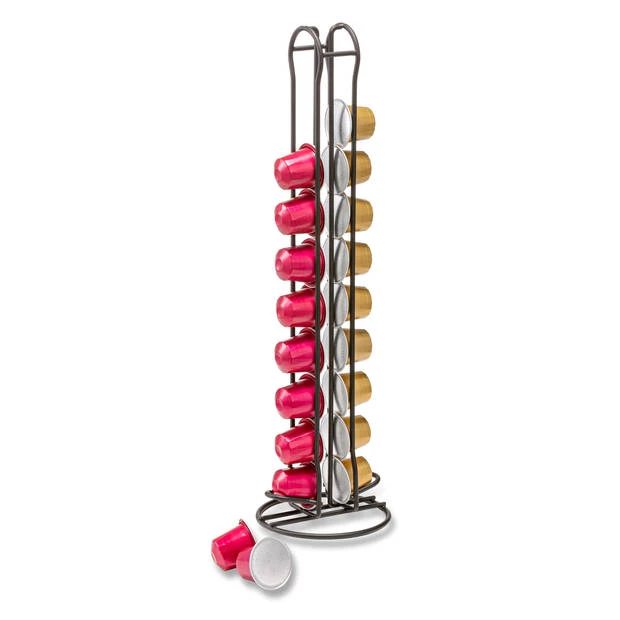 Per rij kun je 10 cups kwijt, in totaal heeft de houder plek voor 20 koffiecapsules.