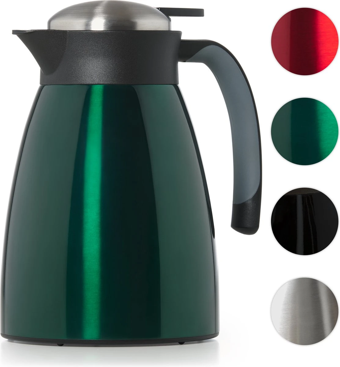 De thermoskan van 1 l houdt warme dranken zoals thee of koffie tot 10 uur warm met behoud van de frisse smaak. Desgewenst kan de kan echter ook eenvoudig worden gevuld met koude dranken. De koffiepot is gemakkelijk schoon te maken, lekvrij en onbreekbaar. De theepot is verkrijgbaar in 4 verschillende kleuren.