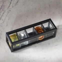 Merkloos Theekist – Zwart – Hout 9-Vaks – Glazen Deksel – Theedoos