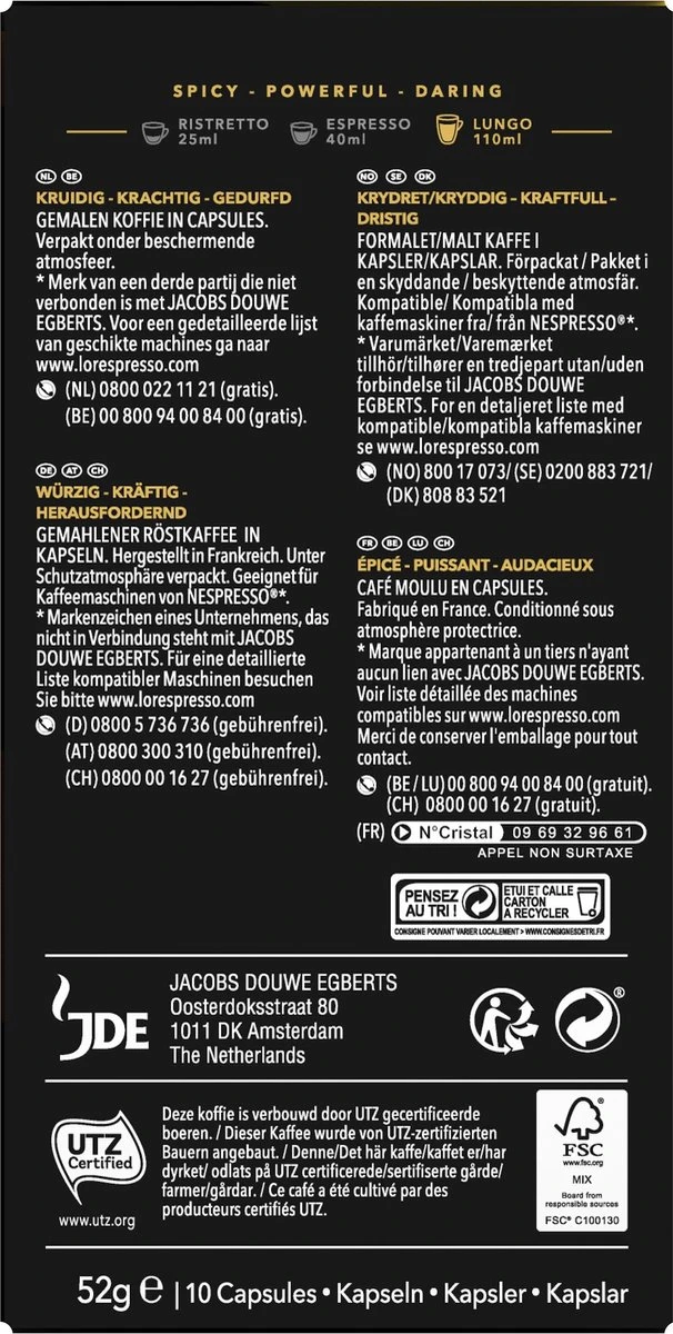 Lungo Estremo is een mystieke rit door het verleidelijke aroma van donker gebrande espresso, verrijkt met kruidige tonen om een krachtige en volle koffie-ervaring te realiseren.