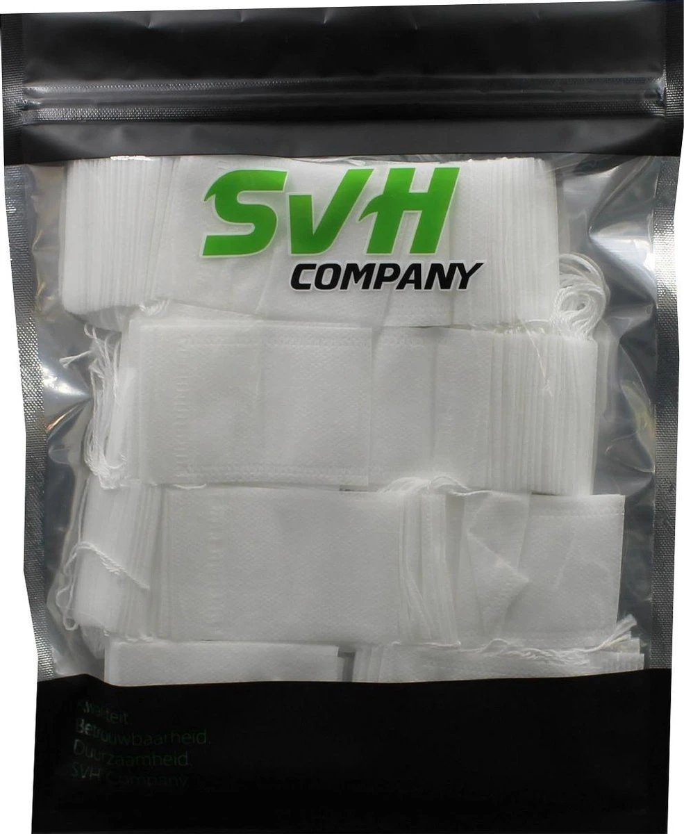 De theezakjes zijn gemaakt van niet giftig non-woven materiaal en dus veilig voor gebruik. Tevens zijn de theezakjes biologisch afbreekbaar en recyclebaar. Na gebruik kunnen ze dus gerust worden gedeponeerd bij het gft afval! Met de ideale afmetingen van 5 x 7 centimeter kan er genoeg thee worden toegevoegd naar eigen smaak!