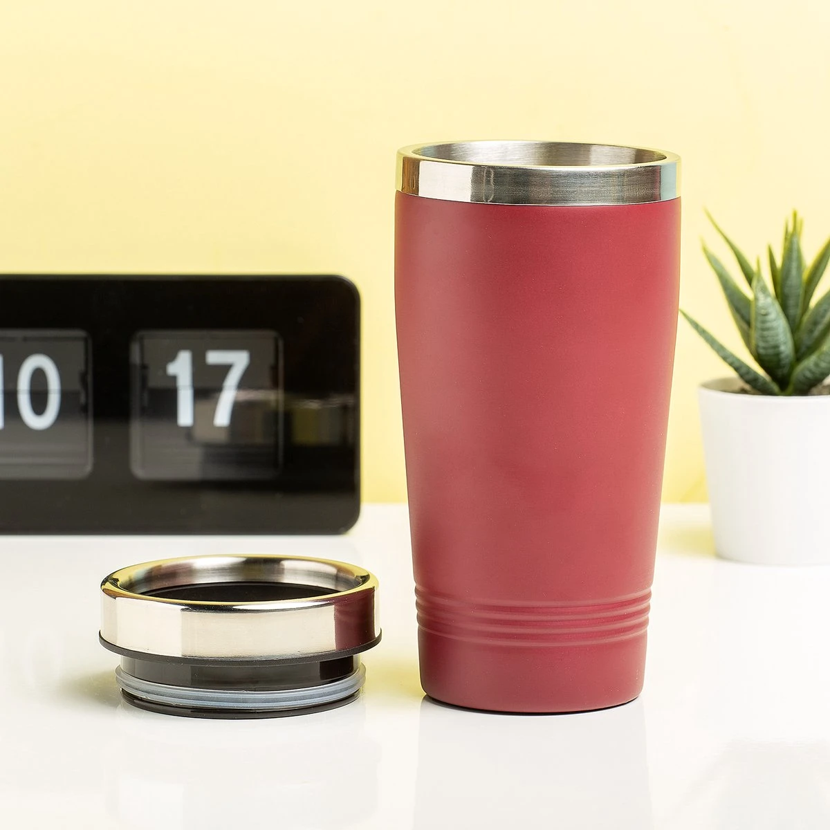 Hogwarts thermosbeker van Harry Potter. Stijlvolle thermosbeker in maroon, met in het goud het logo van Hogwarts/Zweinstein erop. Beker om onderweg mee te nemen, die je drinken langer warm of koud houdt. De thermosbeker heeft een deksel met een drinkopening en is gemaakt van dubbelwandig roestvrij staal. Dit is een officieel gelicenseerd product van Harry Potter. Inhoud: 450 milliliter.