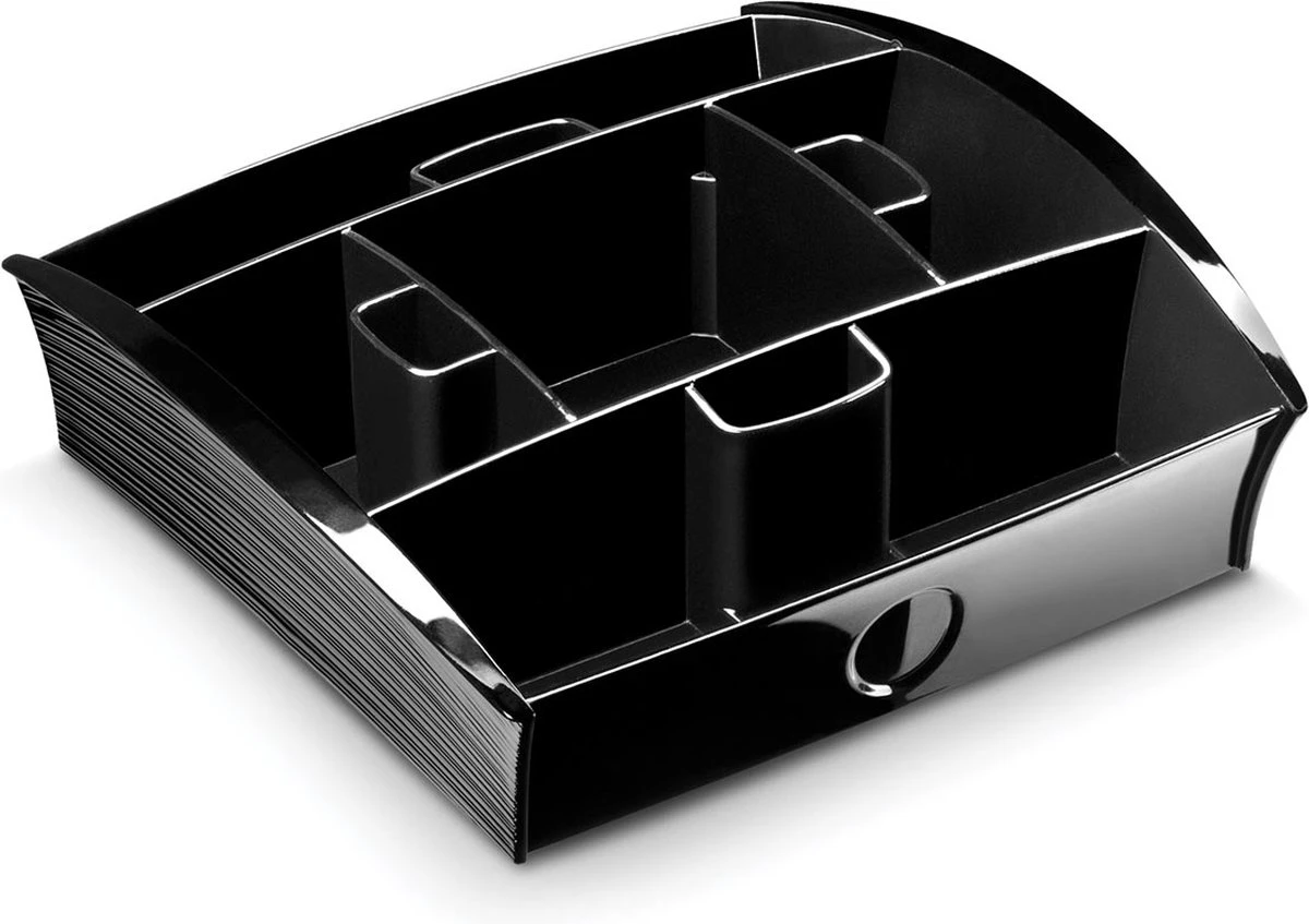 Dit bakje is handig, discreet en stijlvol en is onmisbaar tijdens uw vergaderingen en koffie- en theepauzes. Geschikt voor het opbergen van theezakjes, papieren en plastic bekers, roerstaafjes, servetten en andere kleine voorwerpen zonder dat u uw vergadering hoeft te verlaten. Zo neemt u gemakkelijk alles mee wat u nodig hebt om koffie of thee te maken tijdens vergaderingen en pauzes. Dit bakje is gemaakt van recyclebaar polystyreen en is stevig, duurzaam en milieuvriendelijk.